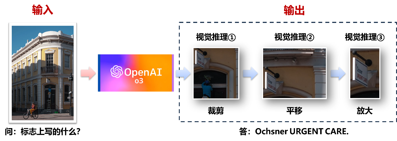 - 细粒度视觉推理大模型:通过“图像思考(thinking with images)”,利用视觉模态作为推理中间步骤,赋予模型主动感知—主动聚焦—主动验证的视觉推理能力,能够自适应地执行图像缩放、裁剪、局部放大等多步操作,对图像关键区域进行逐层深入的细粒度感知,突破高分辨率图像处理及复杂场景下的小目标识别难题,使得大模型能够在保留全局视野的同时,精准捕捉局部微弱但判别性强的细节视觉线索,完成更深层次的细粒度视觉理解任务。